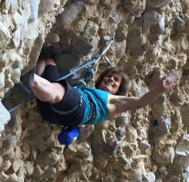 Lesson -- you can successfully fake it sometimes! People who didn't know me assumed I was a crag-appropriate climber warming up and asked what I was there to work on. (You just saw it.)