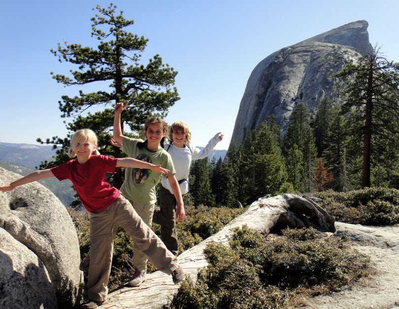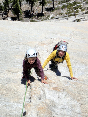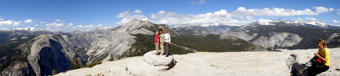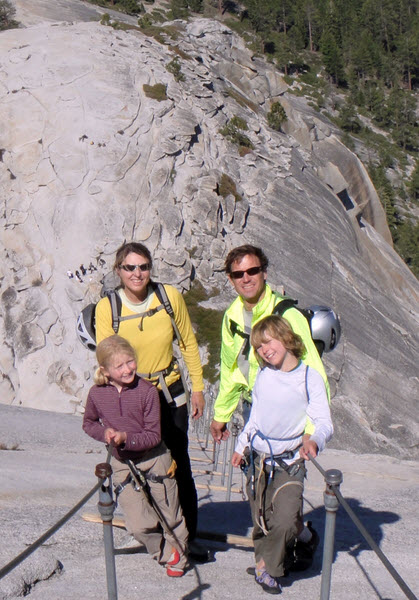 Three perfect days in Yosemite. The kid’s climbed Half Dome round trip in a day via Snake Dike. It’s 12 miles, 10 pitches of climbing, and 4,800 feet of elevation gain. The route ascends the left skyline in the photo below and descends