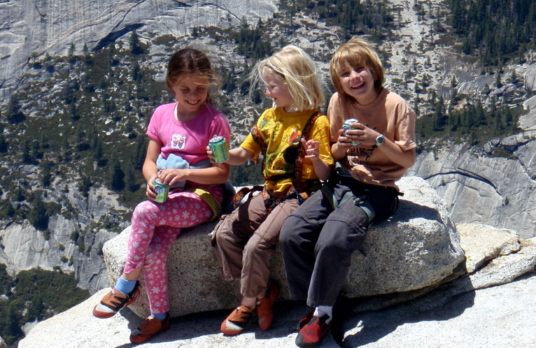 Outstanding Father's day weekend with perfect weather climbing perfect Valley classics with Kara and her little enthusiastic chatterbox climbing buddies Ian and Elizabeth. Sampled the all time classics Snake Dike, Nutcracker, Commitment, Bummer, Lazy Bum, and Lunatic Fringe. Lots of fun although in a rare, shameful moment of parental indulgence I let Kara wear Hand Jammies on LF. It won't happen again. Role modeled important life lessons of patience and restraint by hanging at the base of Snake Dike for two infuriating, interminable hours waiting for the route to clear before exploding into a fit of rage and simul climbing with 3 kids past 8 climbers in one fell, crisscrossing, rope tangling, frenzied swoop. The kids especially enjoyed that part which would be a bit worrisome if such a robust contemptuous 'tude didn't portend so well for a bright Valley future...