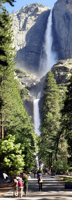 Sunday, we hiked in past Yosemite Falls to Commitment, a fun multi-pitch route with great views of the waterfall.